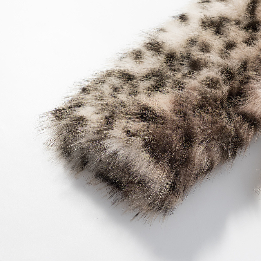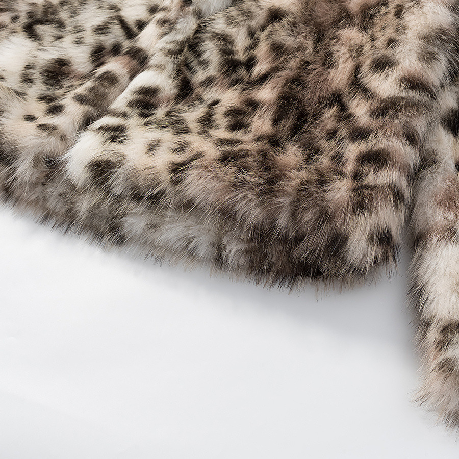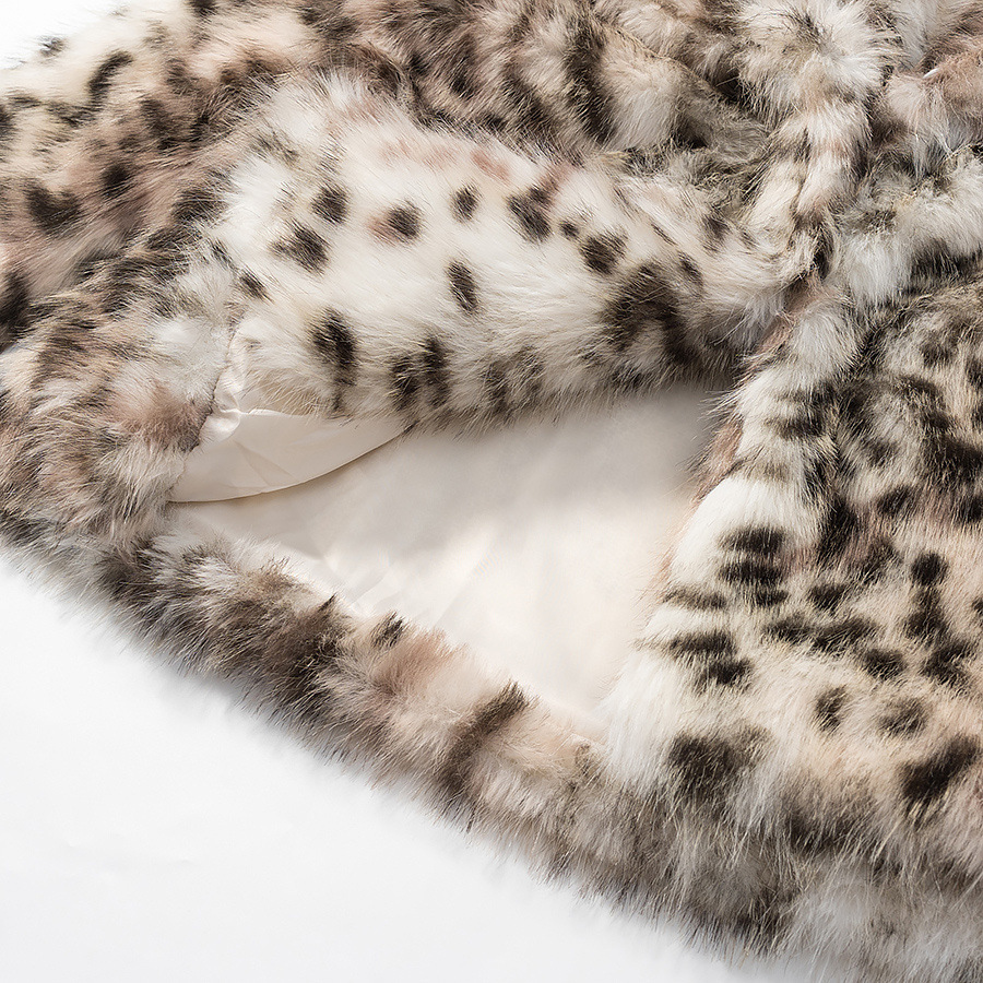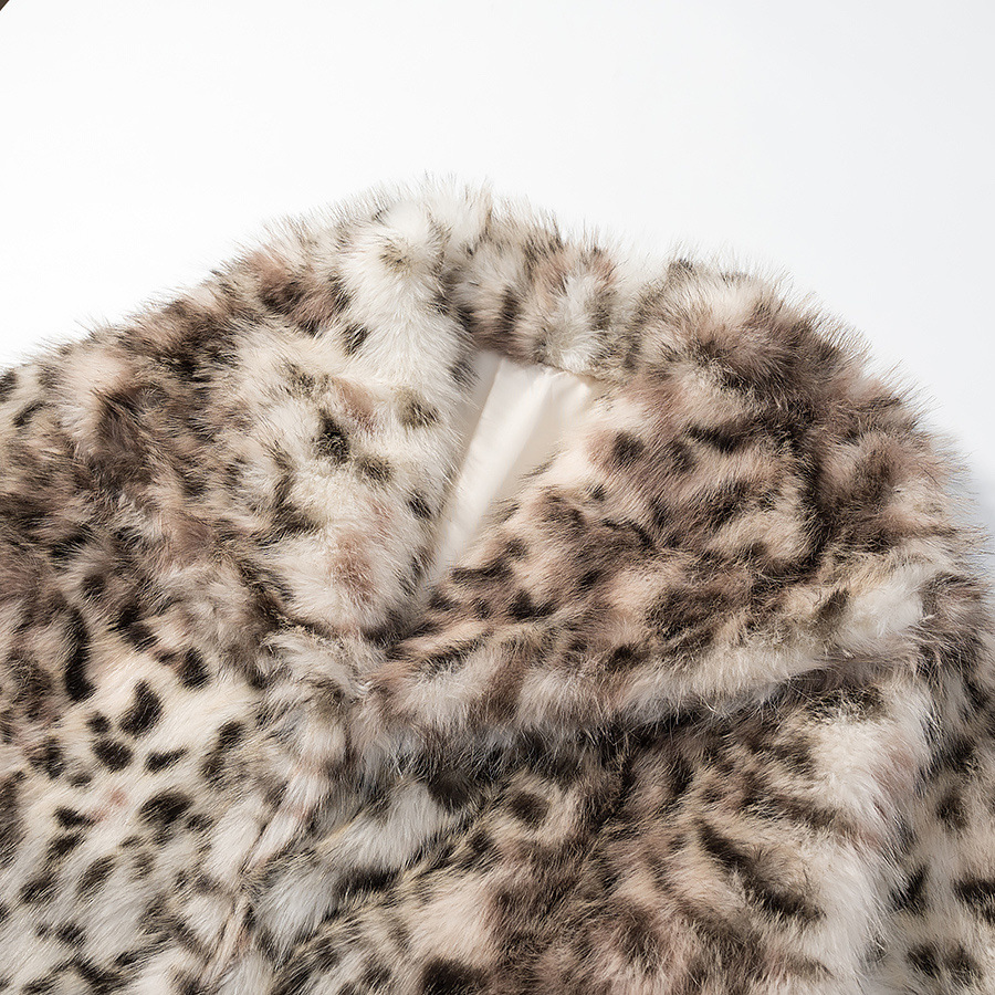Dirbtinio kailio moteriškas paltas su leopardo raštu