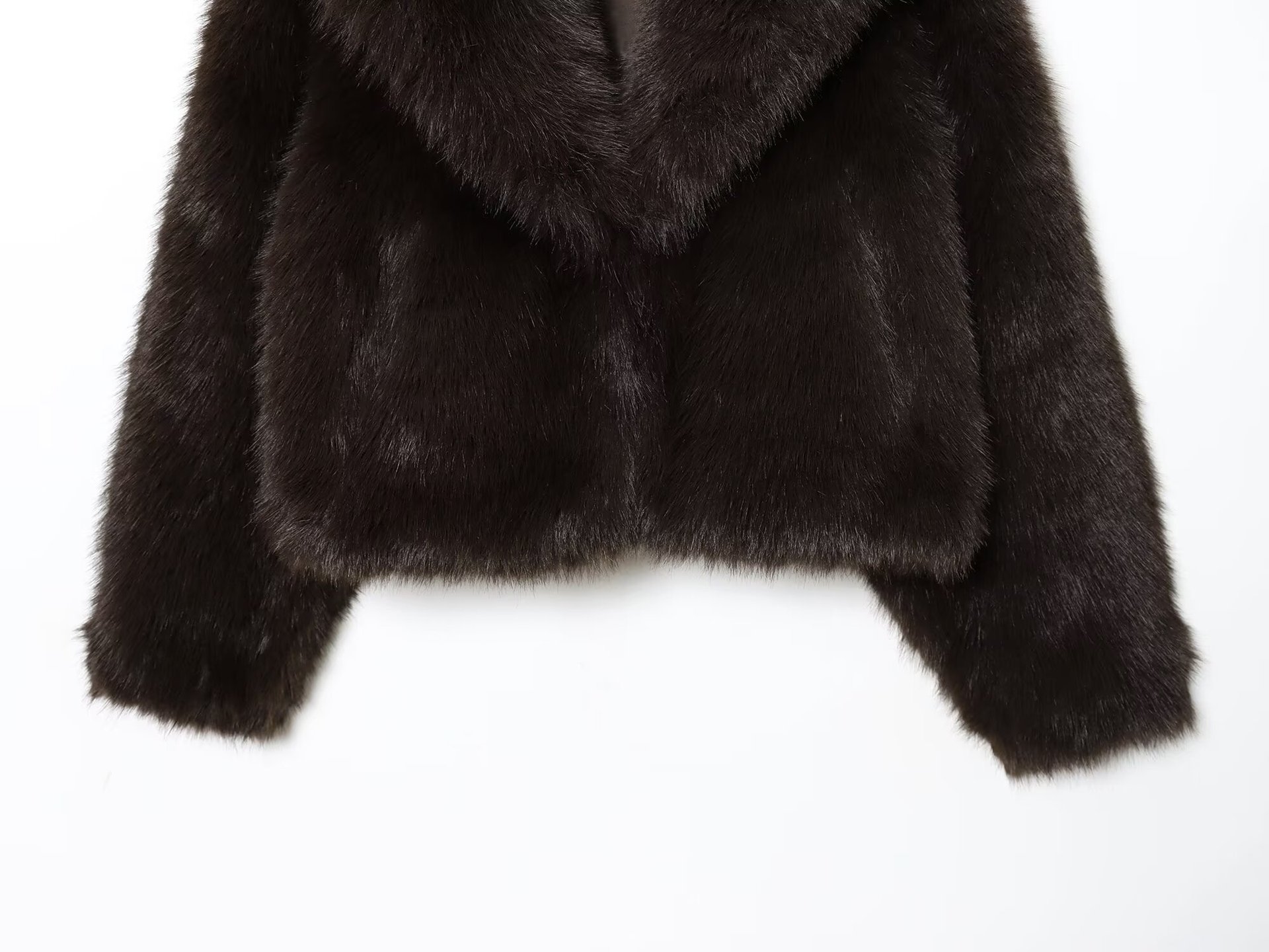 Tamsiai rudas dirbtinio kailio moteriškas paltas „INDEFEIR“